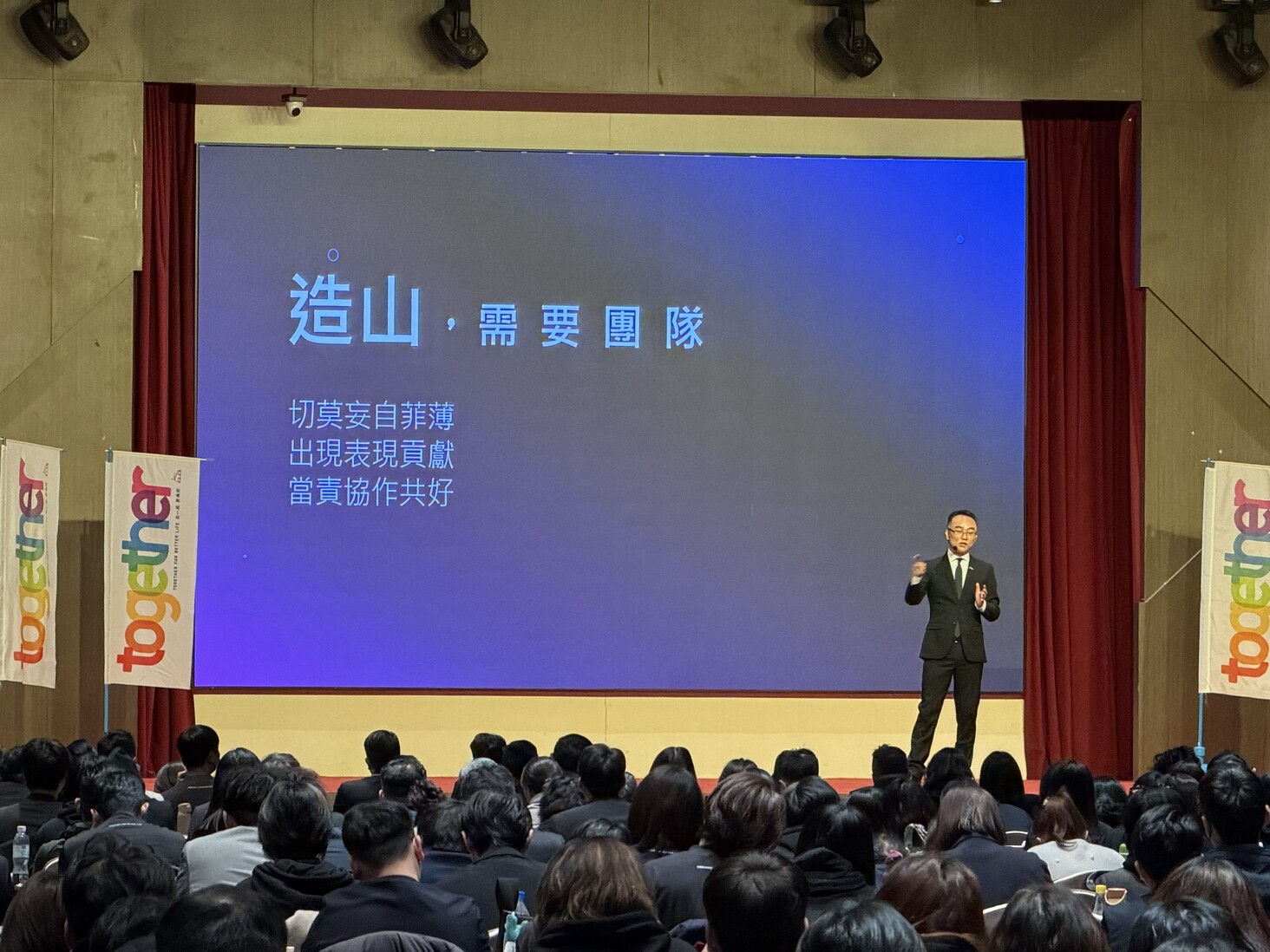 「不是等準備好才出發,而是邊走邊準備好。」業務總經理林世德在台上分享一張 2020 年的舊照,笑說那時的自己,看起來仍相當青澀。這幾年,團隊一同走過疫情、制度變革、市場動盪與產品重整。那些痕跡沒有把人磨掉,反而讓團隊更加真實、更加堅實。