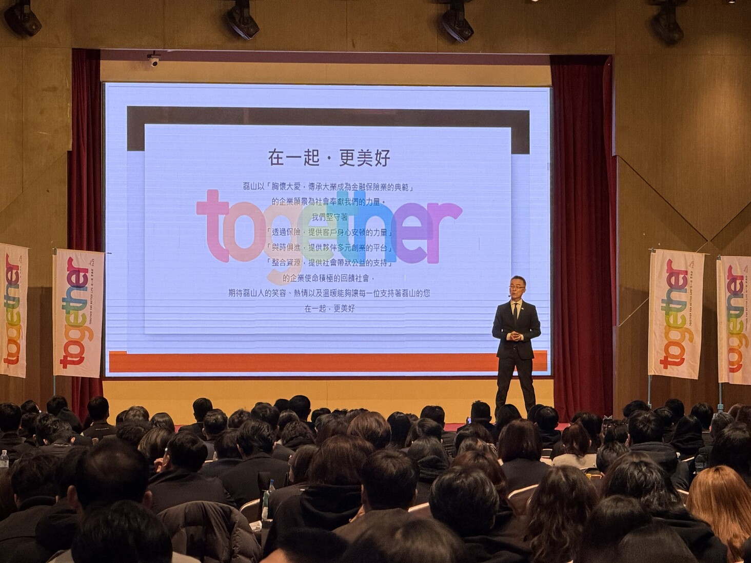 而一直努力帶領團隊的磊山團隊長們,也在這場重要場合中接受公開授證表揚,肯定其承擔責任、帶領團隊向前的付出。同時宣布 2026 年獎勵旅遊計畫,包括日本輕井澤與希臘愛琴海,展現「努力與生活平衡並重」的企業價值。在專業交流上,多家合作保險公司高層亦親臨現場,分享商品趨勢與實務經驗,並一致肯定磊山夥伴在商品與資產配置上的專業成熟度。