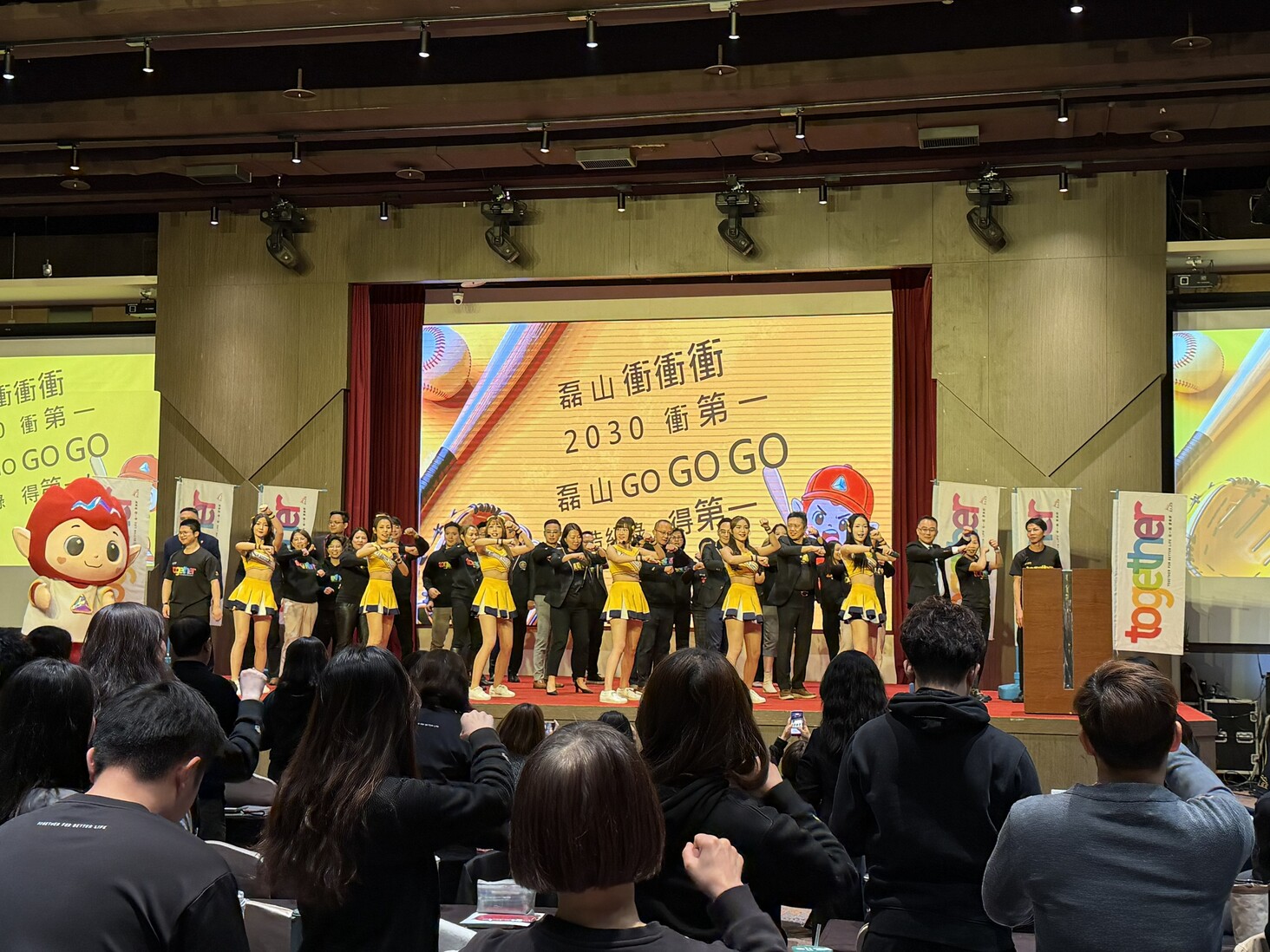 年初策畫會報,不僅在佈達公司策略,也展現磊山重視成果與文化的組織特色。現場安排多項獎勵活動,以現金紅包即時回饋績效,歡呼聲與掌聲此起彼落,並邀請中信兄弟啦啦隊 Passion Sisters 與磊山吉祥物「磊夢」,以熱力演出為現場注入能量,象徵磊山奔向全國第一的行動決心,讓整場會議在高度熱度與凝聚力中進行。